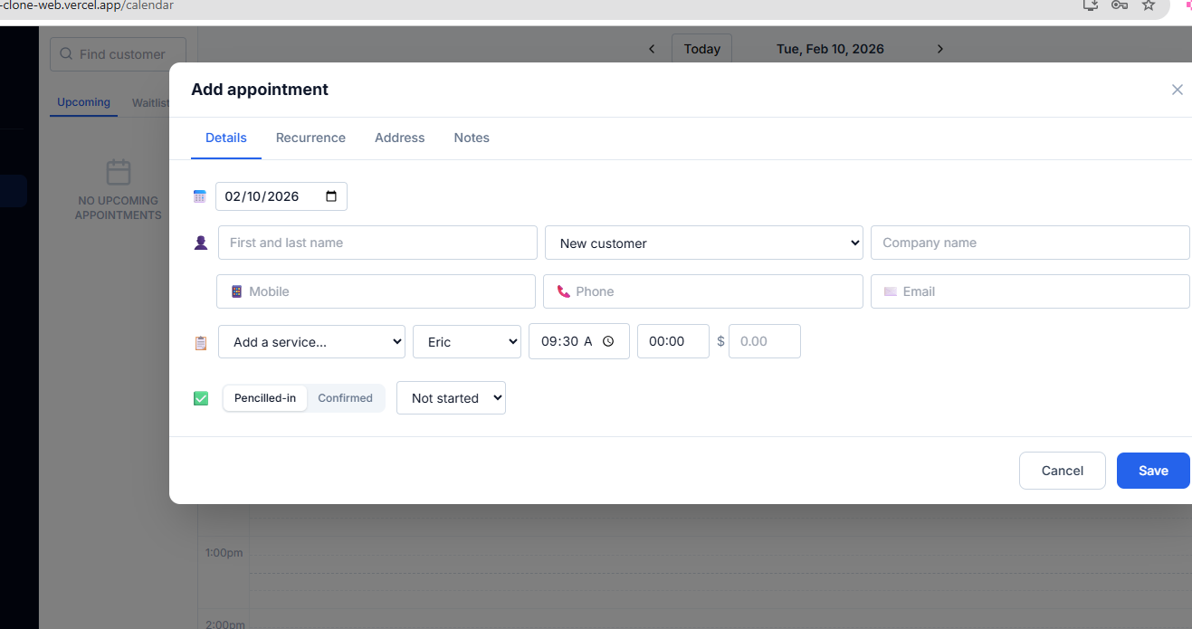 Manage all appointments with drag-and-drop scheduling, multi-staff columns, and real-time status updates.